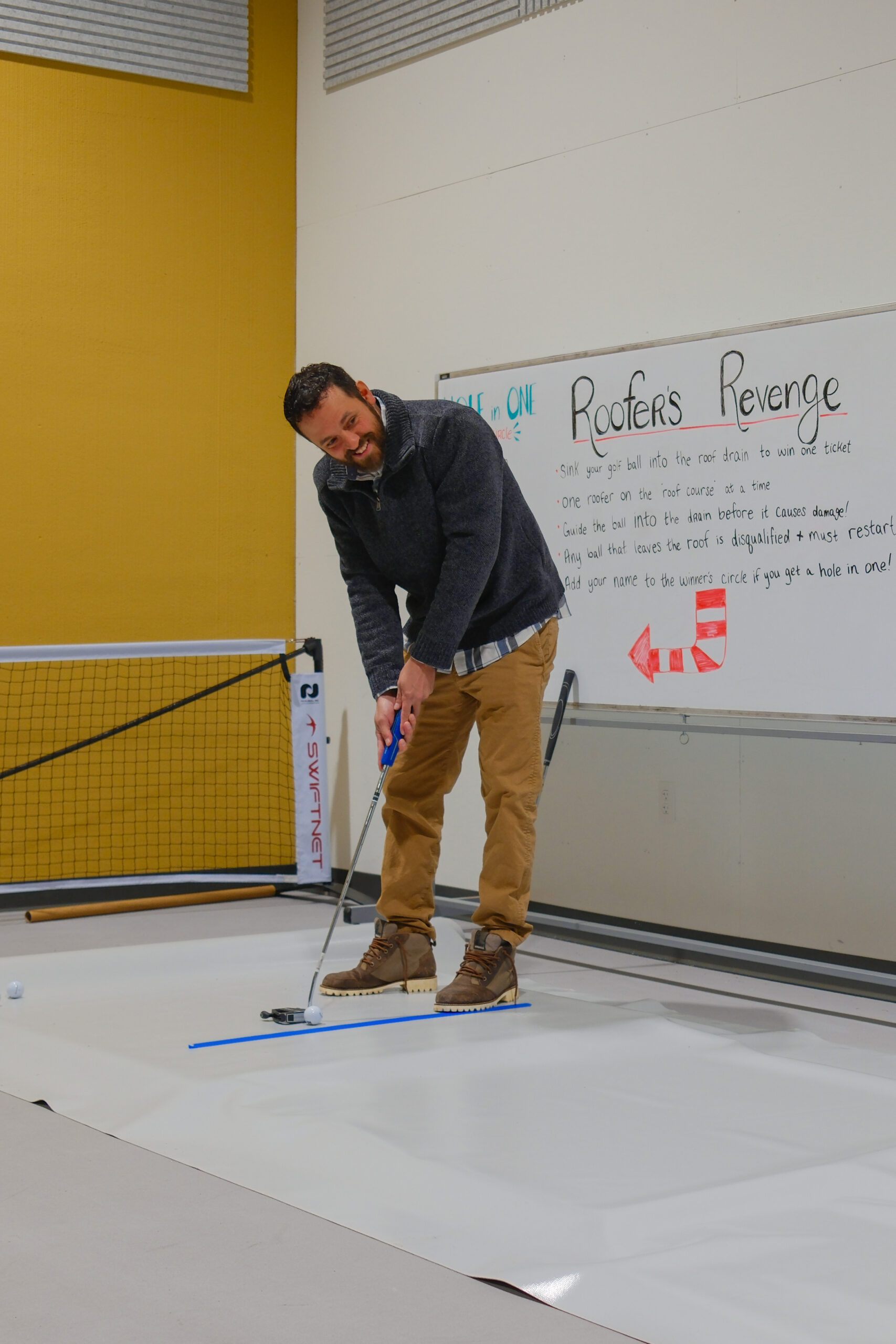 This year’s celebration included festive games that blended creativity with roofing flair. Roofer’s Revenge was a custom putt-putt course built from TPO roofing membrane with a roof drain as the “hole.” It was a hit (and maybe a little too competitive, depending on who you ask). We also had corn hole, cookie decorating, a football toss, and darts.